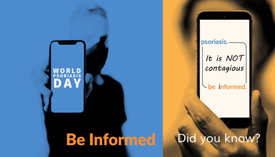 Now more than ever, people are using the internet for information and advice. In this way, through our handheld devices, we have an ocean of information at our fingertips, as well as a tool to engage with what we learn and get connected. For this reason, we have selected the cell phone to represent this year’s World Psoriasis Day. We hope you will use your own device to follow the campaign and spread a word about psoriasis. It is time to BE INFORMED about psoriasis and psoriatic arthritis.